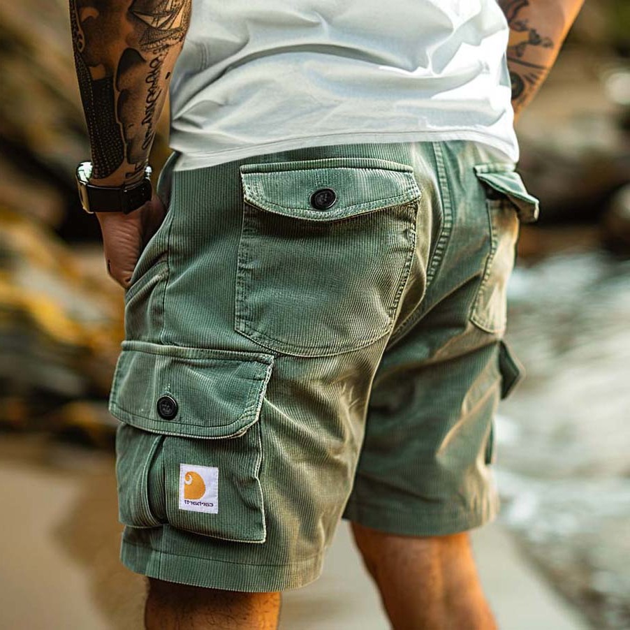 Men's Corduroy Surf Shorts Chic Vintage Beach Vacation Multi-pocket Daily Hawaii Casual Walkshort