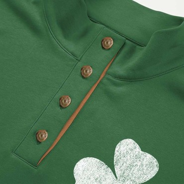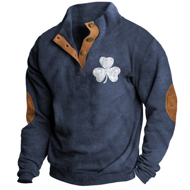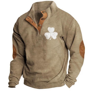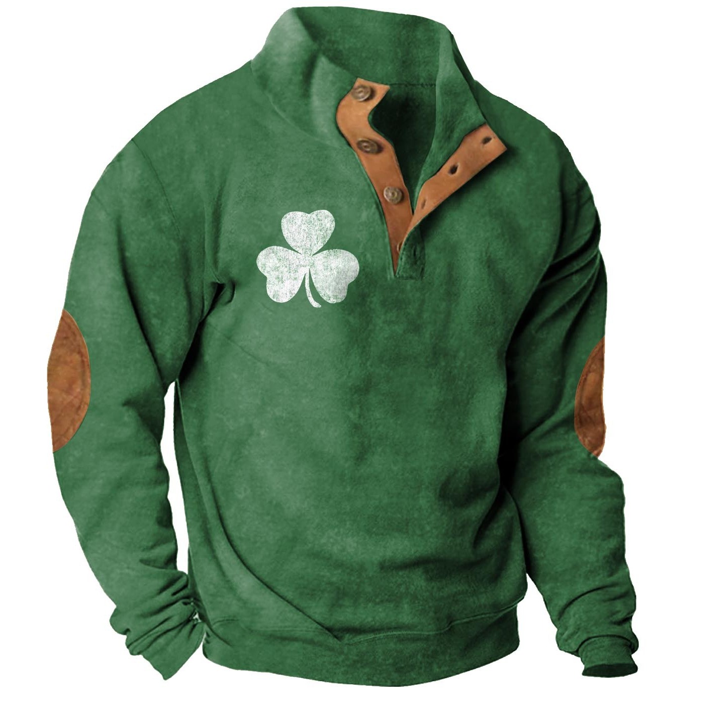 Men's Sweatshirt St. Patrick's Chic Day Shamrock Lucky You Print Stand Collar Buttons Color Block Vintage Daily Tops