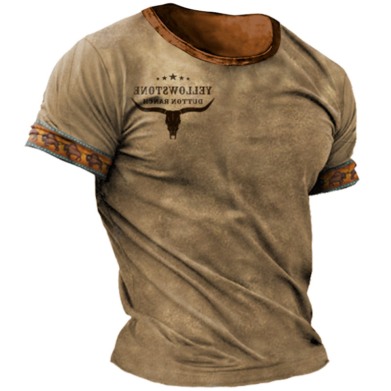 Men's T-shirts Men's T-shirt Chic Vintage Western National Style Print Pattern Summer Short-sleeved Color Matching Round Neck Tee Blue White Khaki Summer