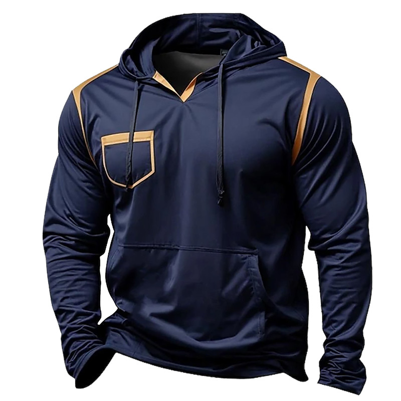 Men's Vintage Color Block Chic Pocket Long Sleeve Hooded T-shirt