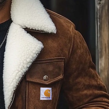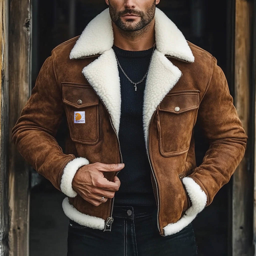 Men's Vintage Multi-pocket Fleece Chic Lapel Collar Outdoor Motorcycle Work Jacket
