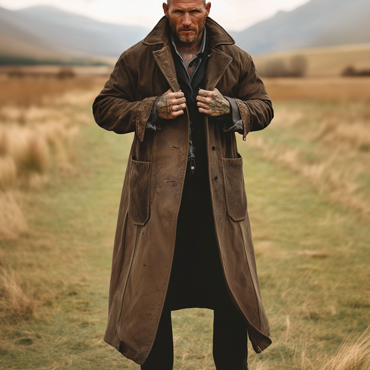 Men's Vintage Multi-pocket Reverse Collar Chic Outdoor Jacket Duster Trench Coat