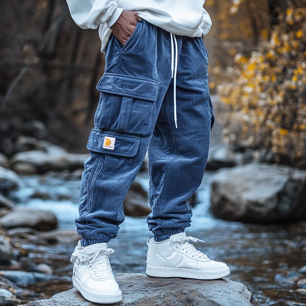 Men's Vintage Outdoor Corduroy Chic Multi-pocket Drawstring Cargo Pants Joggers