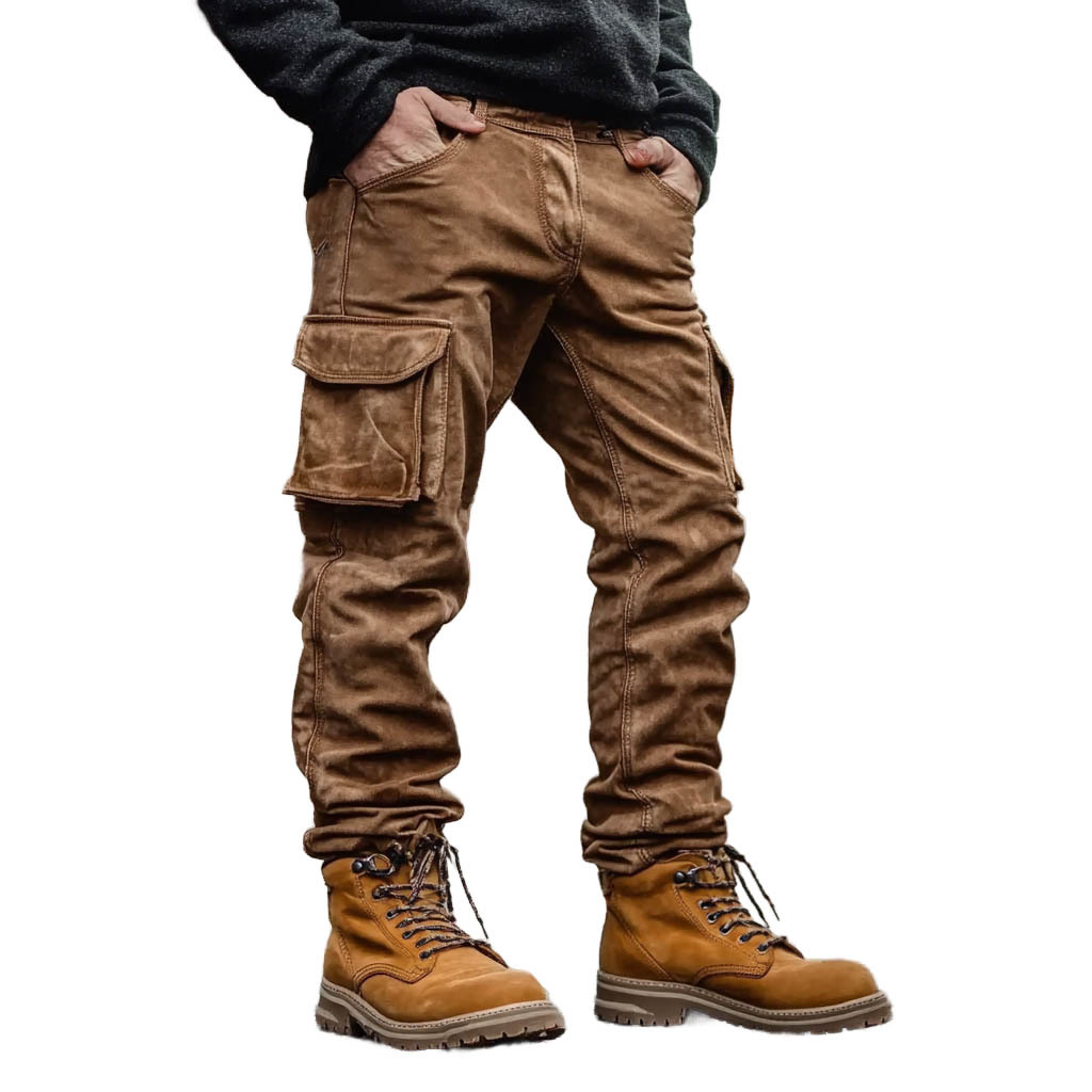 Men's Vintage Suede Outdoor Chic Multi-pocket Cargo Pants Trousers