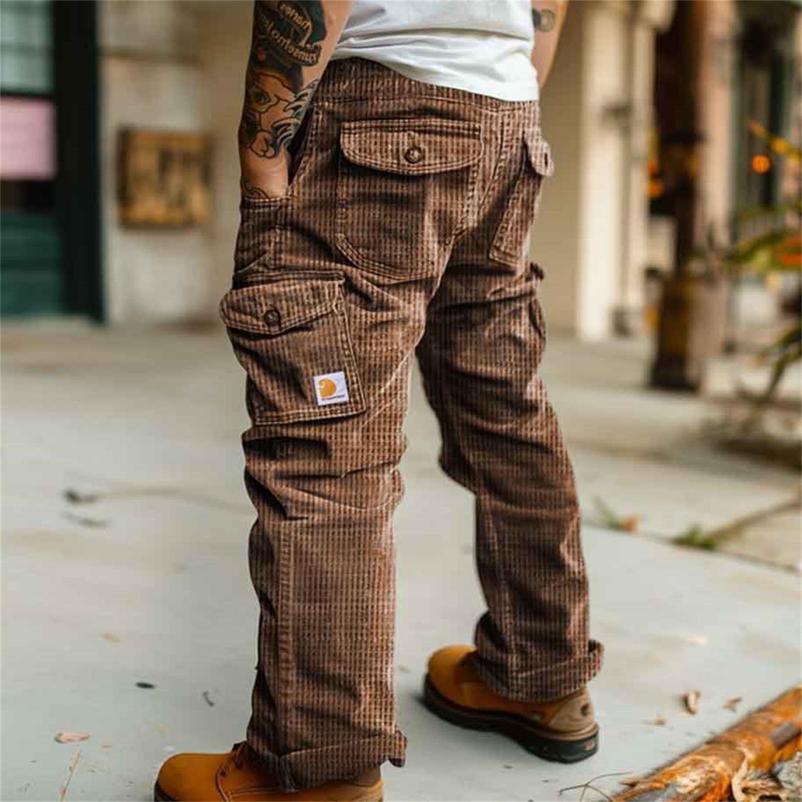 Men's Waffle Pants Vintage Chic Outdoor Cargo Pants Multi-pocket Trousers