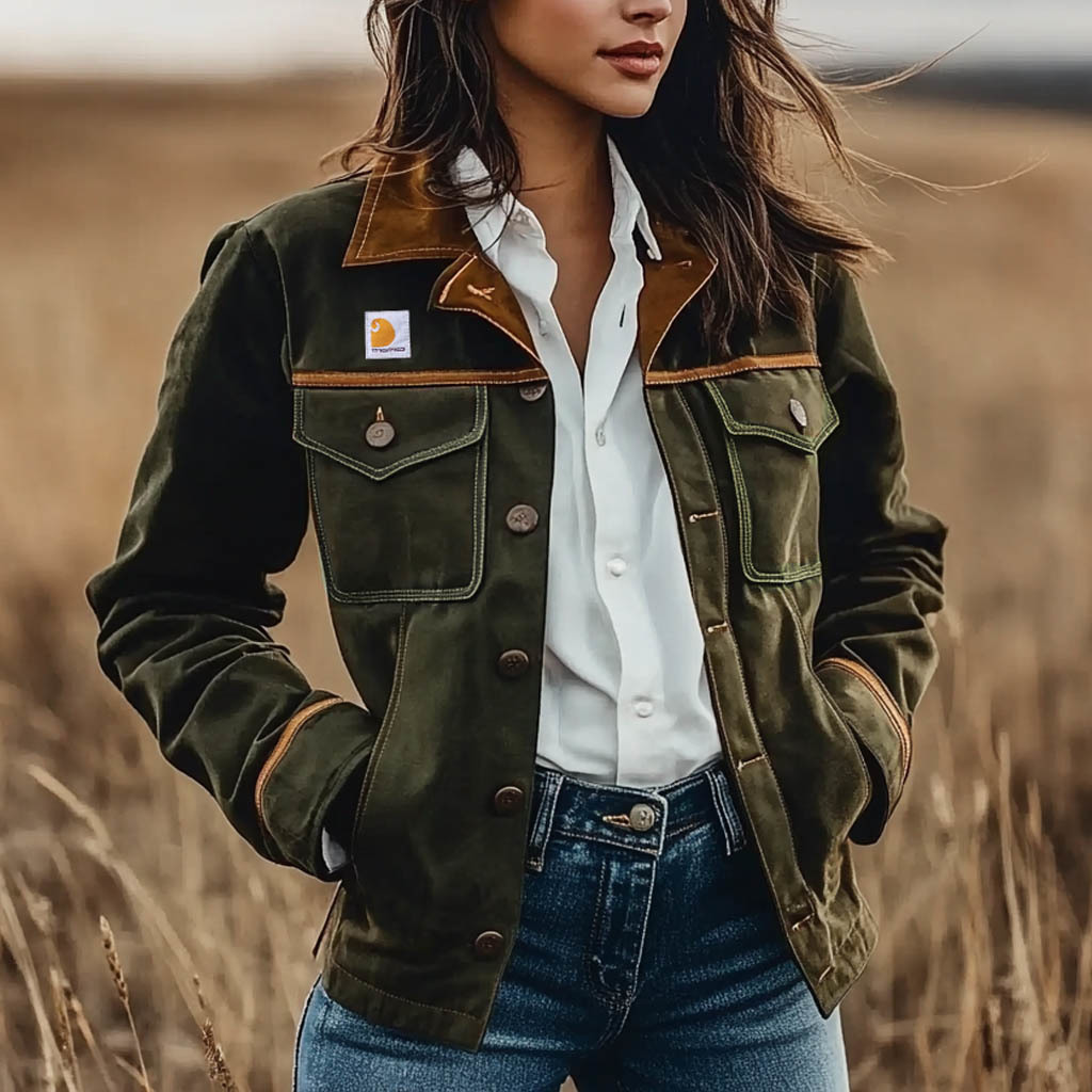 Women's Vintage Suede Colorblock Chic Lapel Collar Jacket